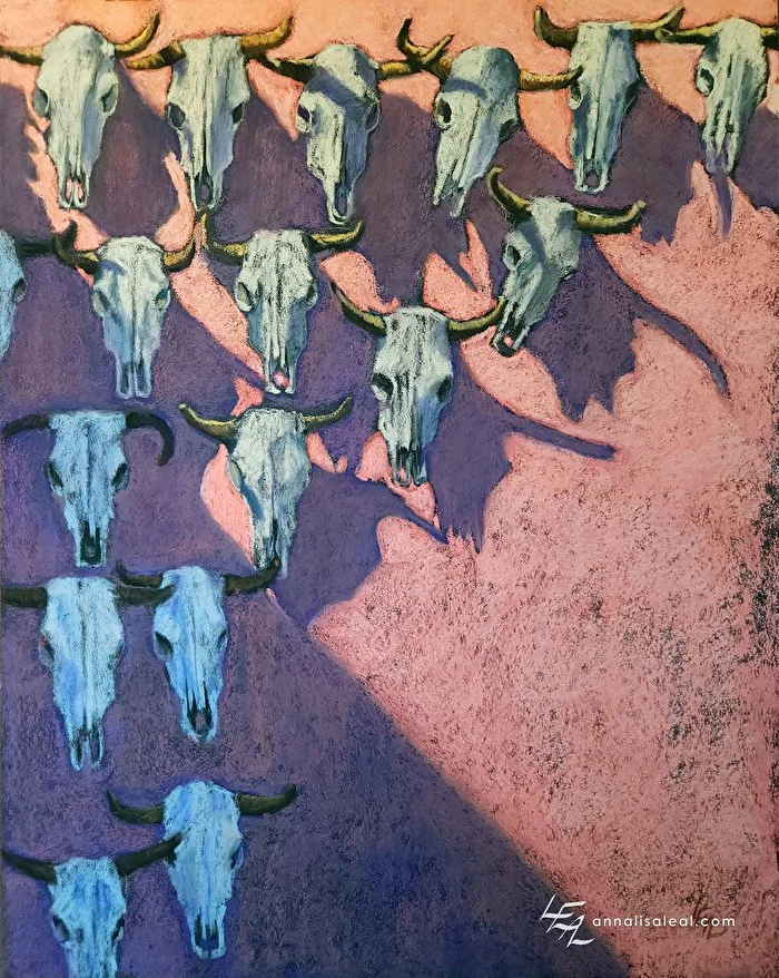 Texas pastel artist, Anna Lisa Leal, honors the fierce beauty of the botanical wonders, wildlife and found objects of Texas, and the Chihuahuan and Sonoran deserts. The textures and tenacity of life in these harsh areas inspire raw, radiant stories painted from her heart to represent the spirit of the American Southwest.