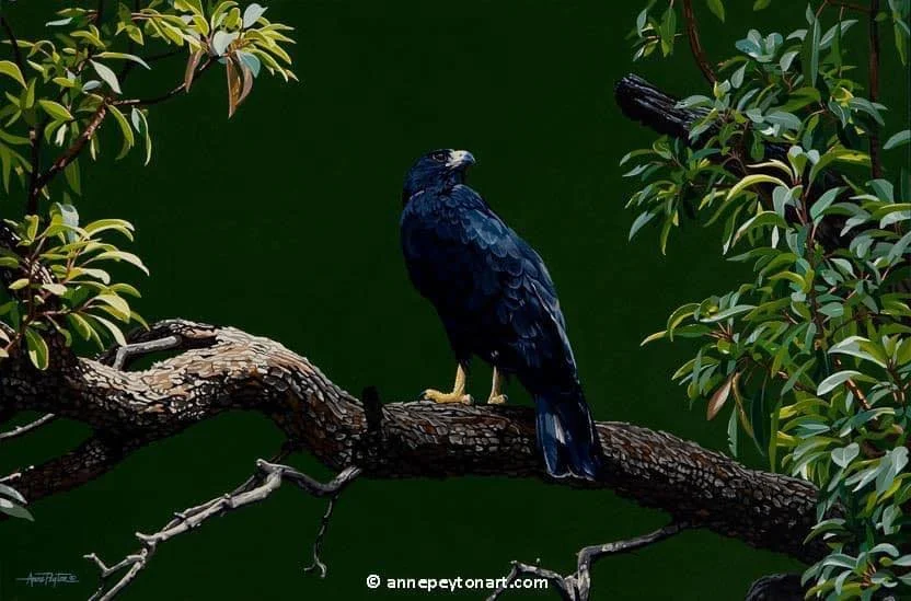 Anne Peyton combines her skill as a painter with her deep knowledge of birds and active birding experience. Her work aims to foster appreciation and understanding of bird life and conservation issues, helping viewers connect emotionally and intellectually with the natural world. She has two criteria for each of her finished pieces: One is that the final image shows respect for the subject; the second is that viewers can learn something after studying the art. She typically works in acrylics, layering colors meticulously to portray accurate plumage, and the natural posture and attitude of her subjects.
