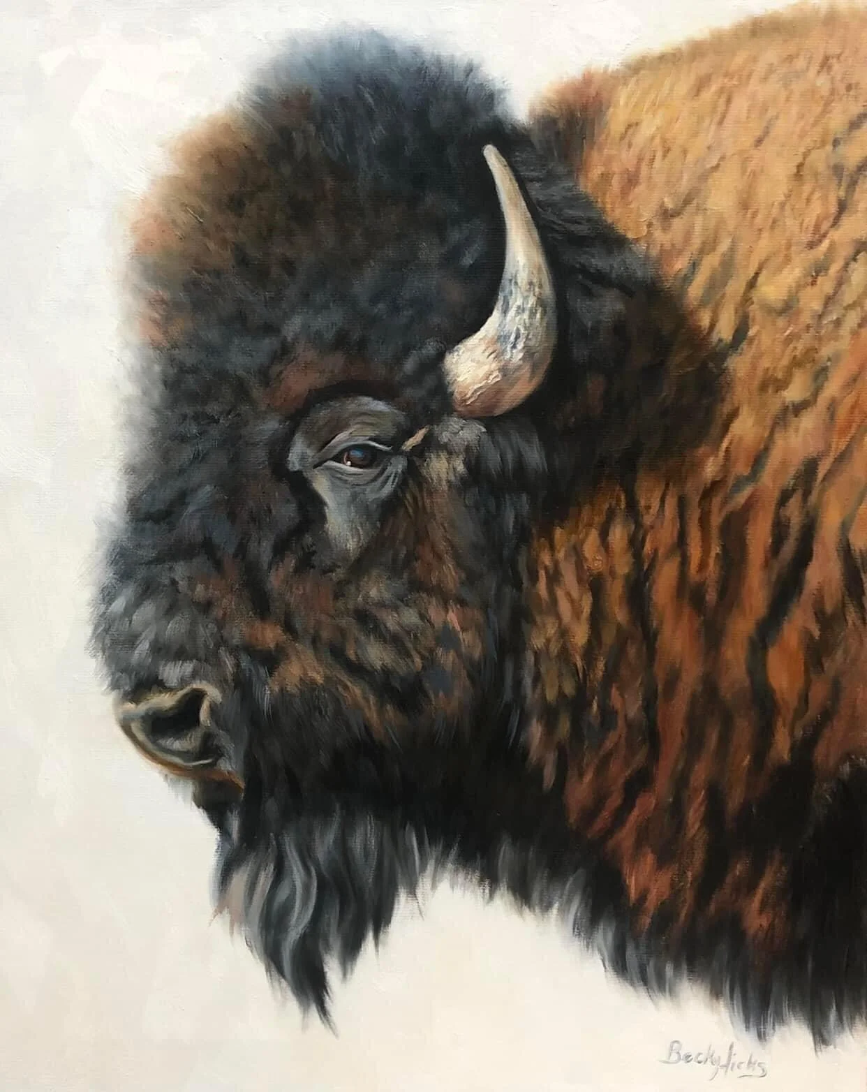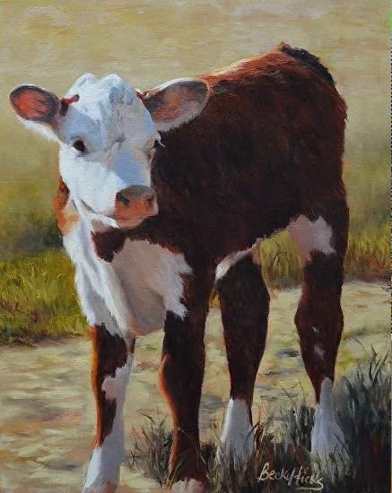 Becky Hicks’ love affair with painting cattle started with the summers and holidays spent on her great grandmother’s ranch. She spent hours with scissors and stacks of The Cattleman magazines cutting pictures of cows, barns and fences. Little did she know then that her painting, Gold in the Morning Son, would be featured on the cover someday. In addition to cattle, Hicks also paints and draws the western and ranch lifestyles, Native Americans, animals and wildlife in oils, watercolors and charcoal.