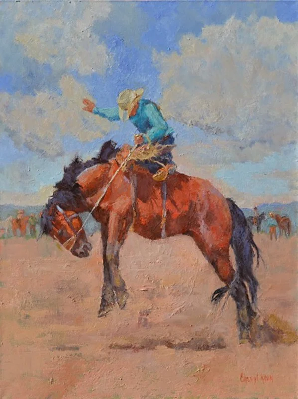 Whether it is the poetry of a mustang in gallop or the sublime beauty of the southwestern landscape, Cheryl Koen’s paintings reflect the spirit of the west and its inhabitants. The wide–open spaces conveyed in her work are meant to invoke a feeling of nostalgic connection with the wild west and dreams of times past and present.