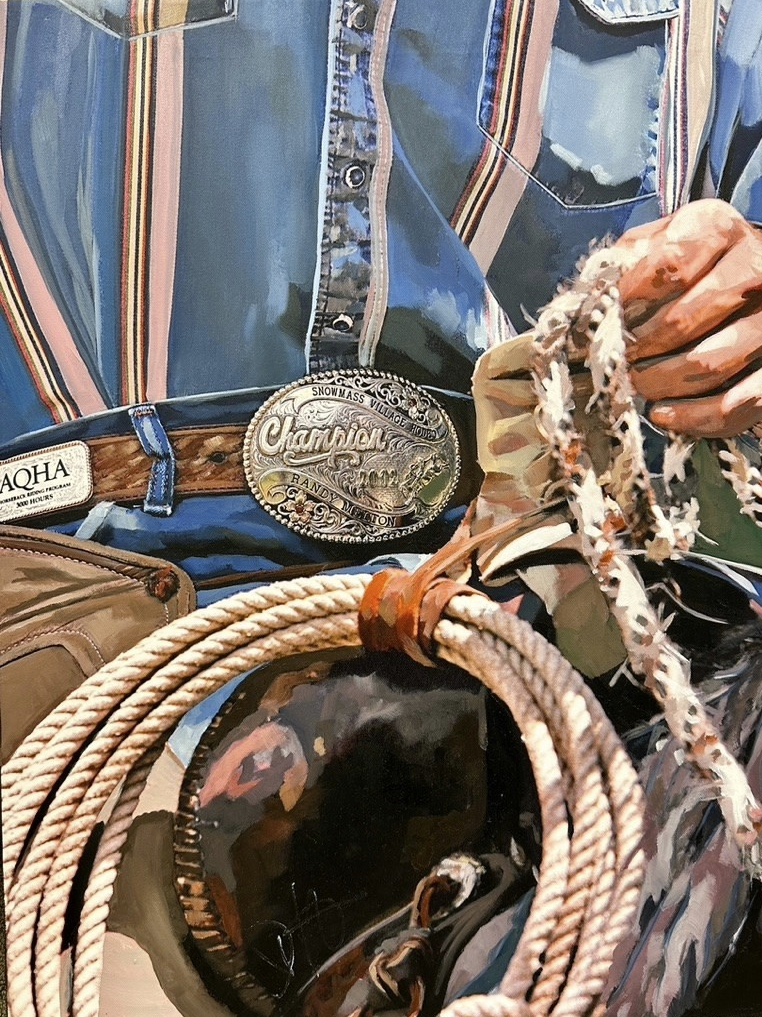 Today I focus on expressing my love of horses, dogs, and people through art. My work combines photography and oil painting techniques, creating mixed-media pieces on canvas in many sizes. Commission work currently makes up much of my business, allowing me to create meaningful artwork for others.”