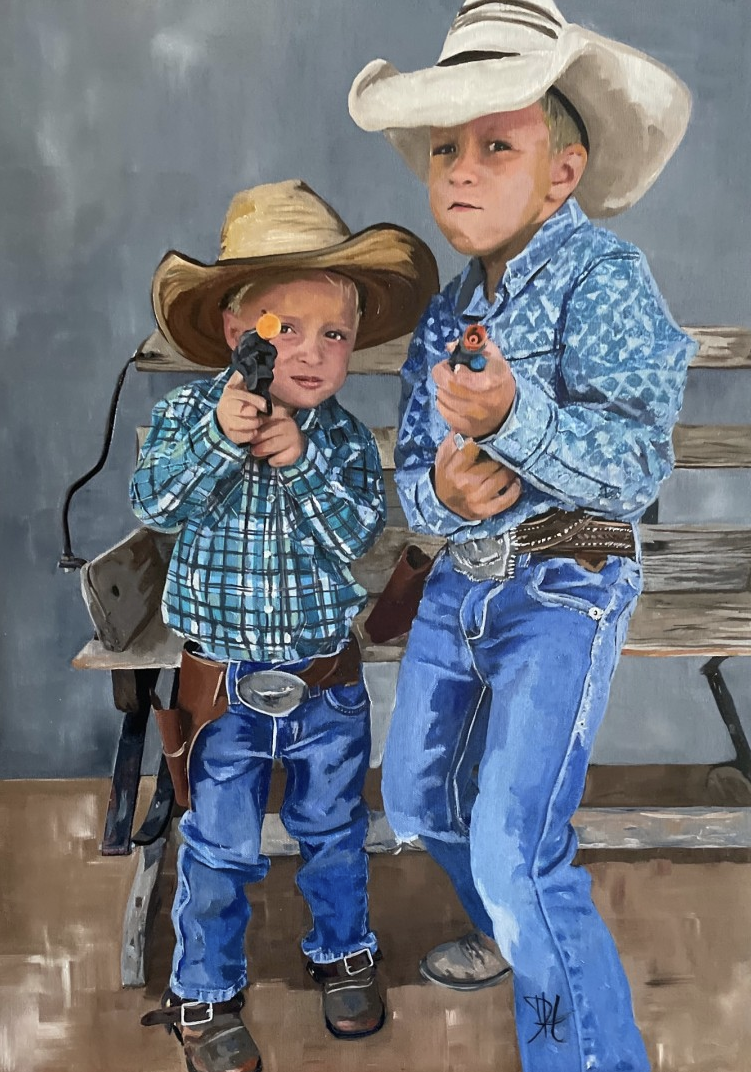 Our life has always been filled with horses, ranch life, hunting, and Labrador Retrievers. From 1999 to 2007 we worked as outfitters in the Marble Rockies, which is where our boys spent much of their childhood. Those years were busy and demanding. Between raising kids, caring for horses and dogs, ranching 100 acres for hay, and running a photography business, we were always on the move—what we called “run and gun” living. In recent years, I discovered a new chapter of creativity as an oil painter. In February 2020, I attended a three-day painting clinic with a well-established artist. I fell in love with the technique immediately and have been painting ever since.