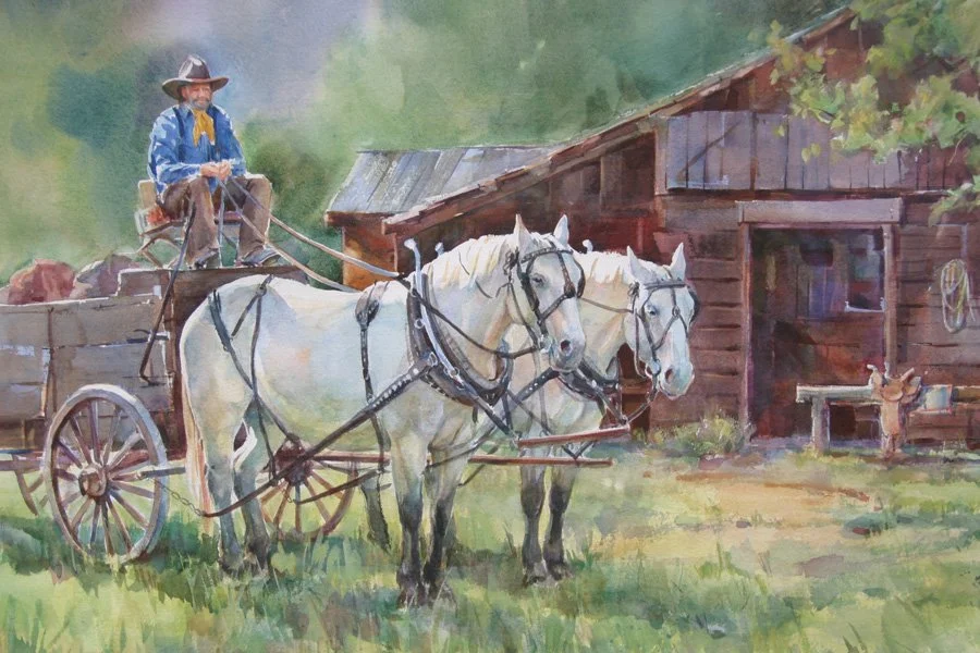 Jane Skaar Coleman paints the diverse beauty of the western landscape and its wildlife, animals, and the western lifestyle in Wyoming and Arizona. She works in watercolor and oil in a realistic style, primarily in studio with occasional adventures painting en plein air.