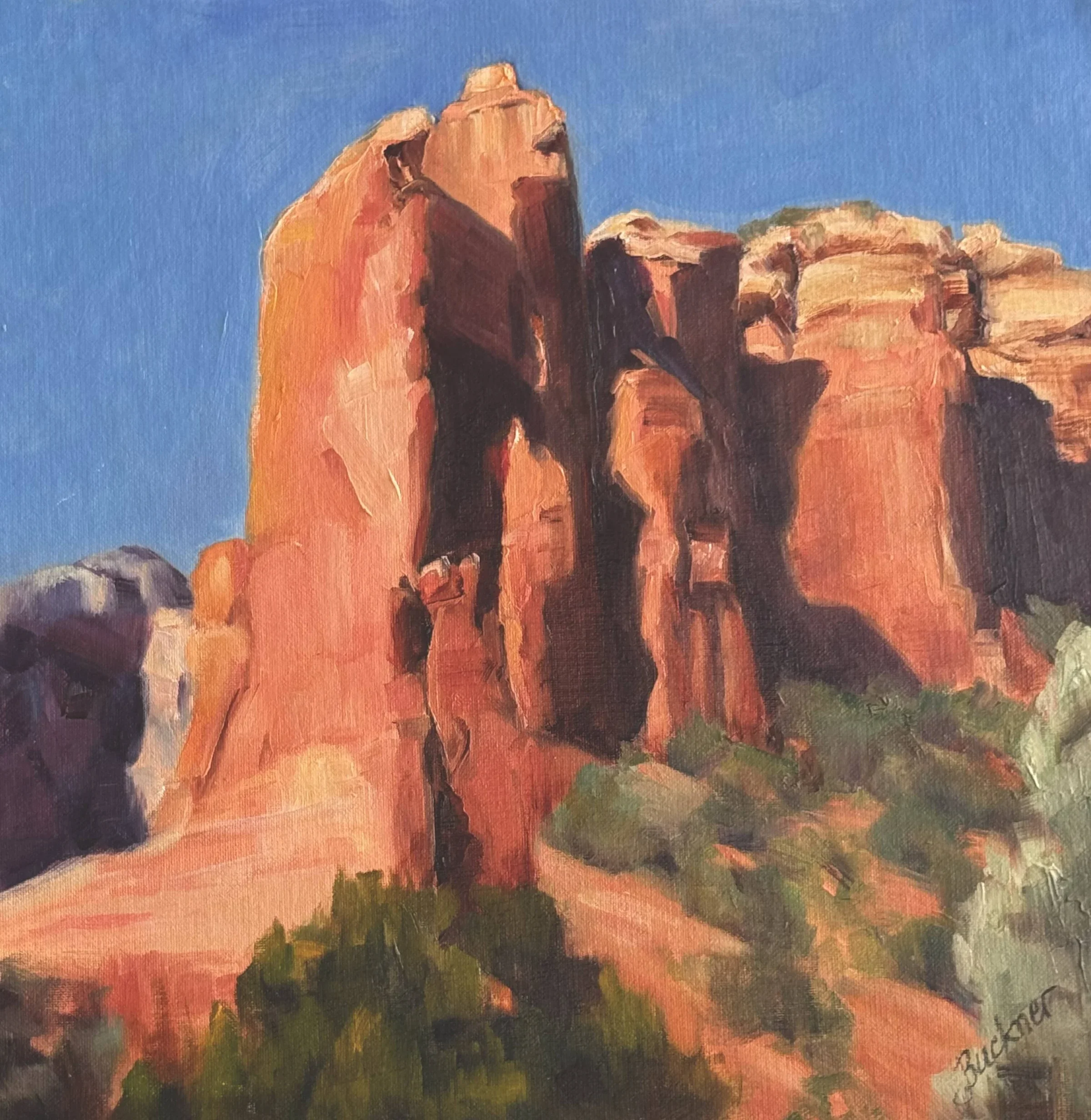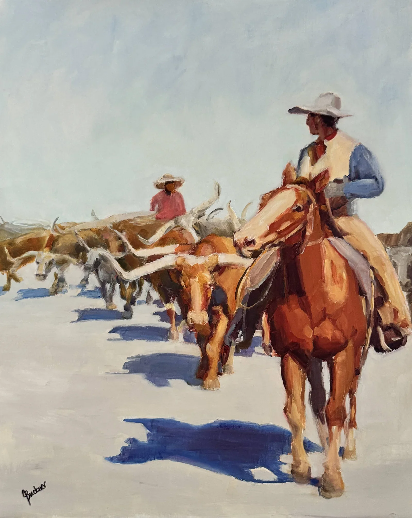 Buckner, born and raised in Texas, honed her artistic skills at Southern Methodist University and through private mentorship with seasoned artists. She is recognized as an associate member of the Women Artist of the West, award-winning signature member of The Texas Visual Arts Association, as well as being a member of O.P.S., A.C.A., and the Mckinney Plein Air Society over the years.