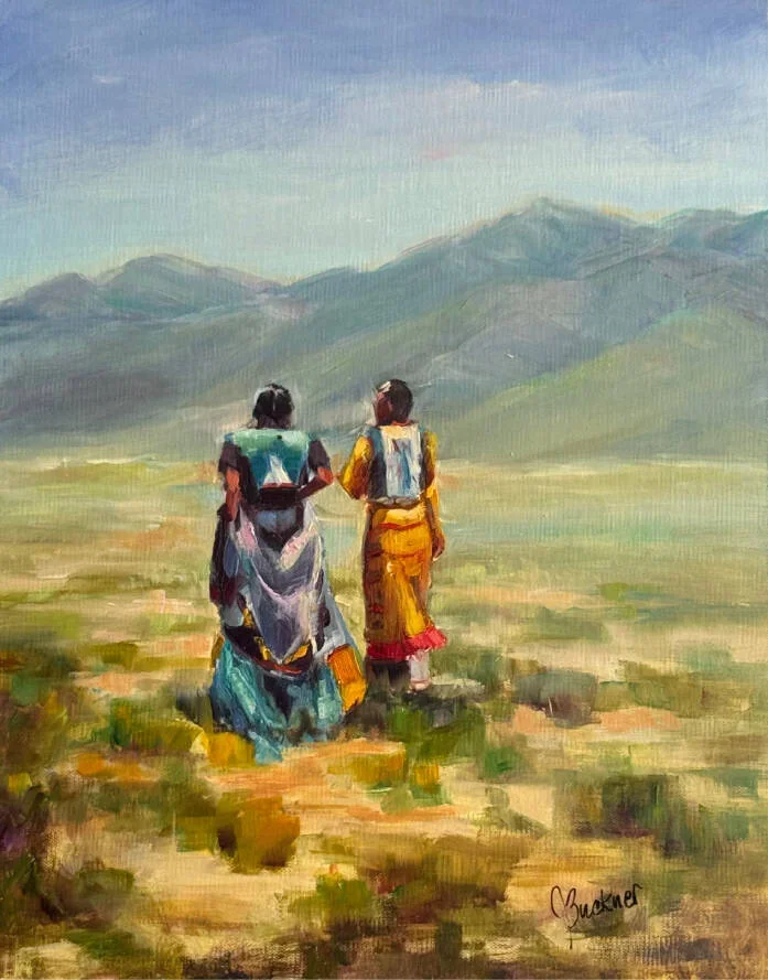 Judy Buckner paints her deep connection to the Southwest, fueled by family time spent in New Mexico, Arizona, California and Colorado, where she draws inspiration for her oil paintings from the people and landscapes. She is also a mural painter, whose work is displayed at Dallas Fort Worth and Love Field airports in Texas, in addition to several restaurants in the area.