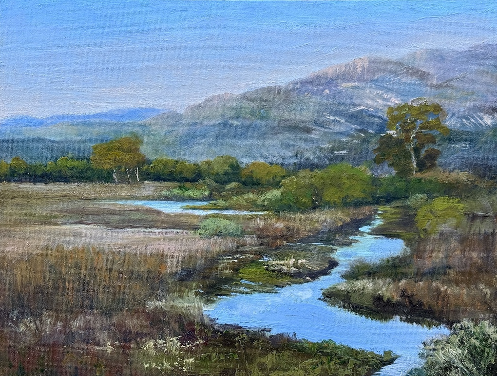 A native of North Dakota Karen grew up where the prairies with there wild open spaces and clean blue skies developed her love of the undeveloped landscape. It was enhanced with a move to Arizona and then New Mexico with there magical red vistas. Life then took her to Coastal California where she also fell in love with painting the water. Karen had the need to create from and early age and has worked in many mediums including ceramics, china painting, water color ,pastels and oilseed acrylics. She lives in Carpinteria California and is continually amazed at the beauty of a beach side atmospheric view.