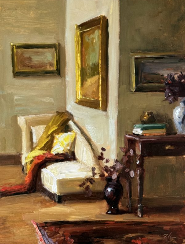 Kelli Folsom is an award-winning contemporary artist best known for her oil paintings of still life scenes and landscapes, created directly from life with a classical, painterly sensibility. Her style blends traditional techniques influenced by the Old Masters and American impressionists, emphasizing rich color, dramatic light and expressive brushwork.