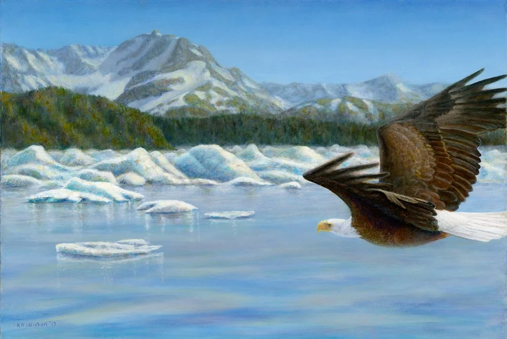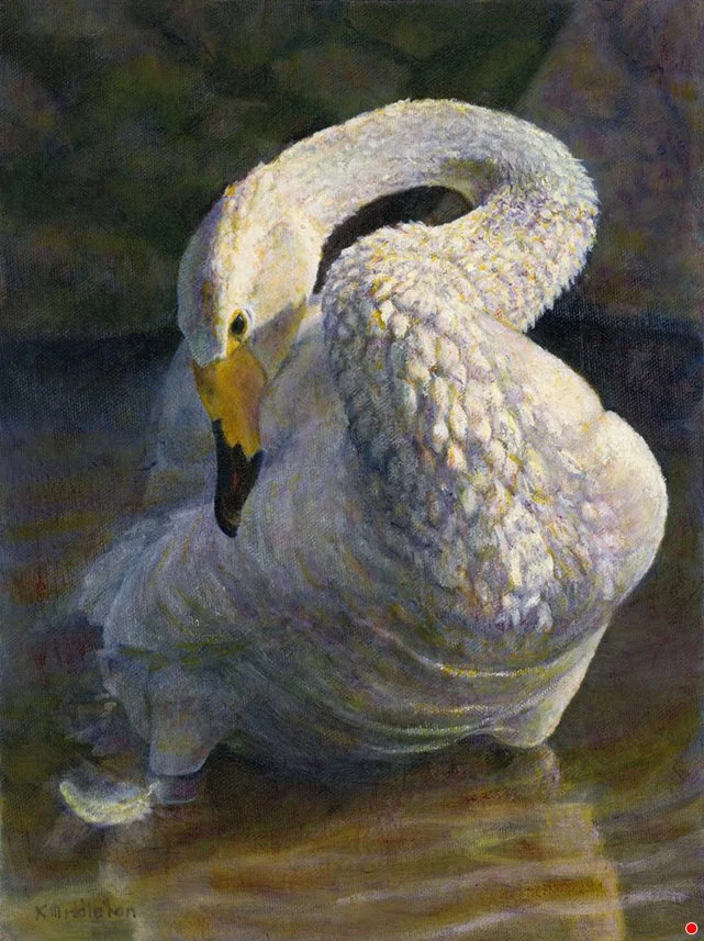 Middleton’s ability to bring birds and their personalities to light through her paintings comes from a long association with them. She graduated from Western Washington University with degrees in biology and chemistry and then spent her life working and studying birds as a biologist, rehabilitator and bird trainer. Her artistic goal is to create a vibrant essence of her subjects by enhancing their expressions, gestures and colors.
