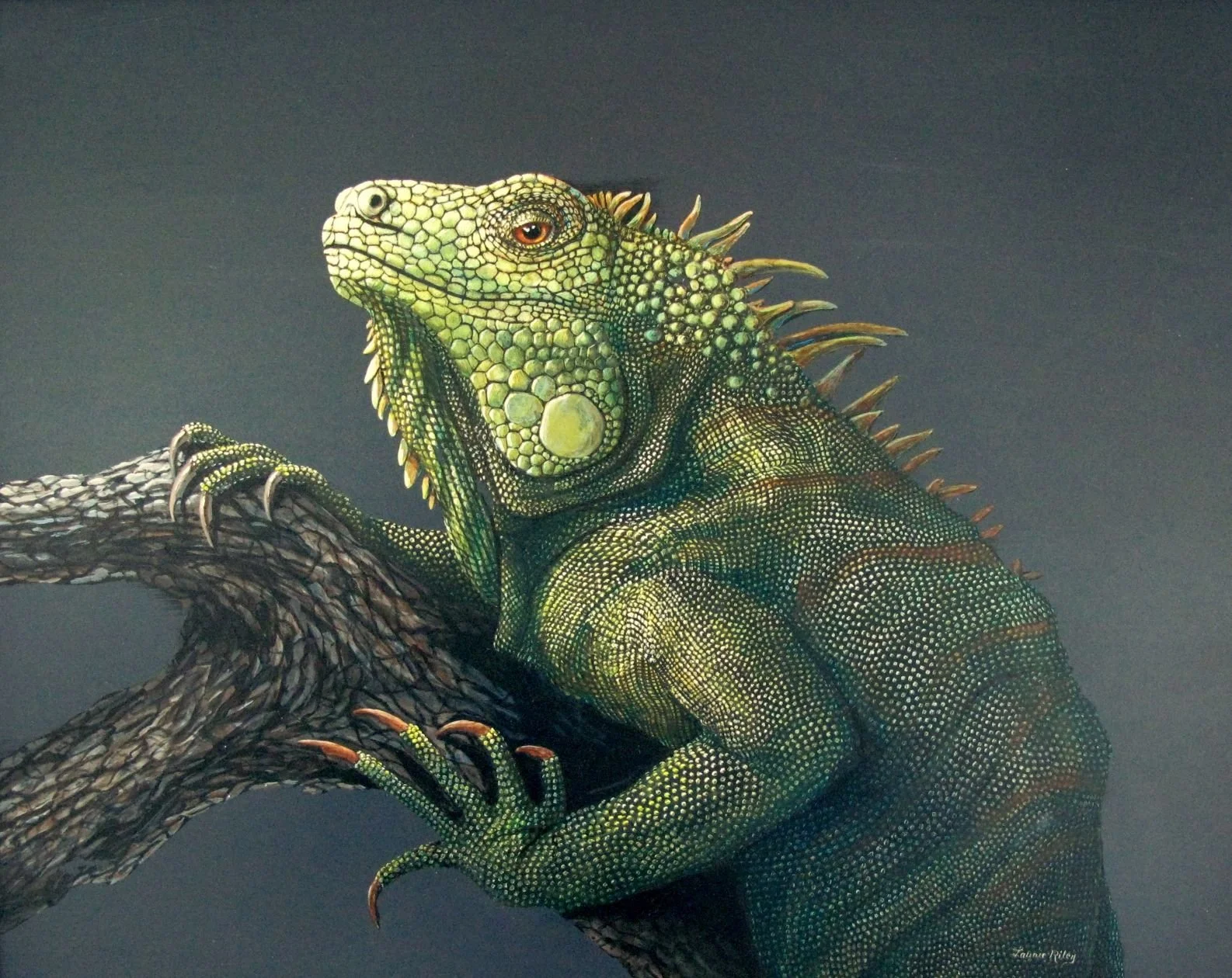 Laurie Riley is an American nature and wildlife artist known for highly detailed, realistic depictions of animals and the natural world. She specializes in capturing the spirit and beauty of wildlife, from small creatures like mice and dragonflies to large mammals like moose, aiming to show both their physical presence and their sentient essence. She works in a variety of traditional media, including acrylics, scratchboard, colored pencils, and watercolor pencils.