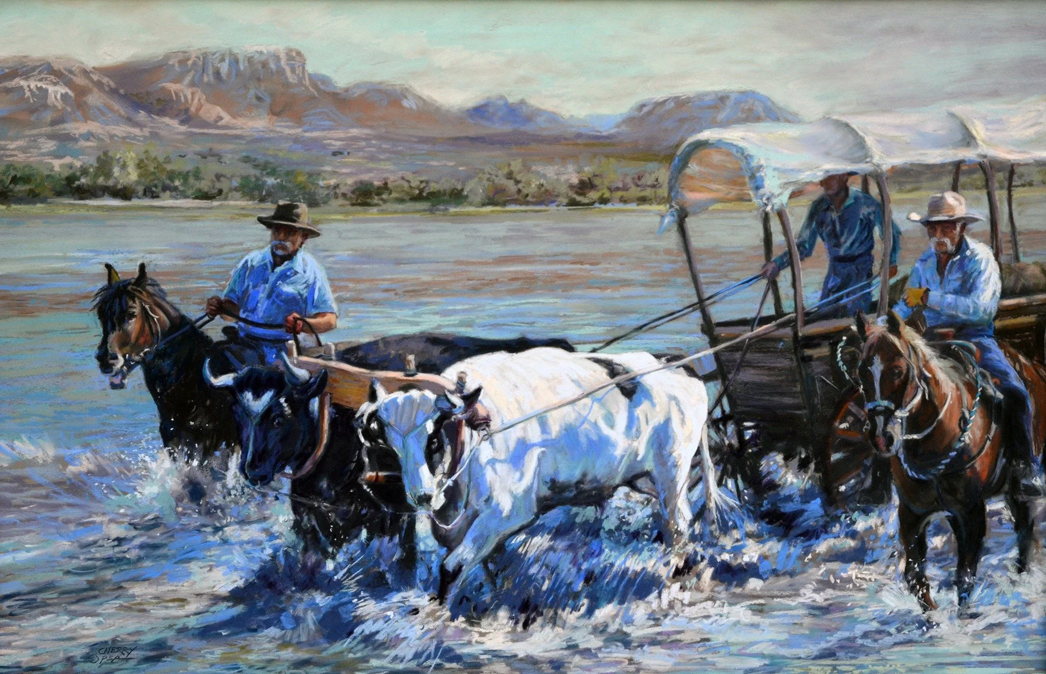 Cherry was raised in rural Montana near the Yellowstone River. Her folks were big Charlie Russell fans, which boosted her interest in western art at an early age. Her mother put a paintbrush in her hand when she was eight and her dad sketched horses, especially buckin’ broncs, rattlesnakes and a lot of other non-girly things for her on newsprint or from an old lined pad of paper.