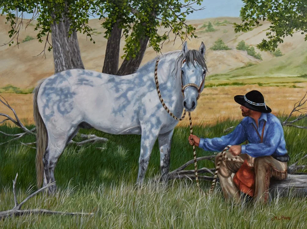 Mary Lou Pape’s passion for nature has made wildlife and the western way of life the primary focus of her artistic practice. Her primary mediums are oil, pastel and pencil. Travels to national parks, nature preserves, rodeos and ranches in America continually provide her with inspiration for her paintings of life in our remarkable country.