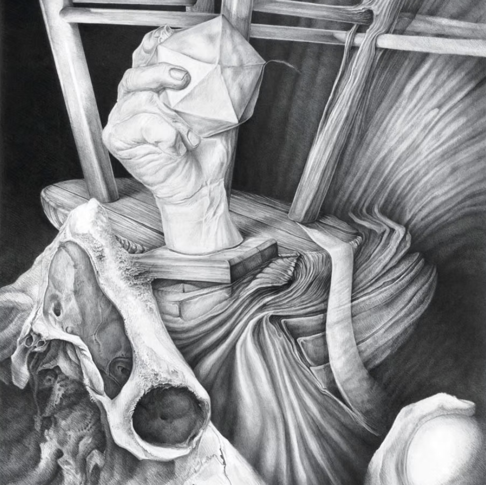 The graphite piece, “Skull with Mannequin,” received honorable mention during the 2023 Mark Arts Abstract National Competition. Another graphite piece, “Skull with Stool,” was published in Artist Magazine Special Winter Edition 2025. “Self-Portrait,” a mixed media ink and colored pencil piece, was finalist in the Masters of Equine Art International Juried Art Exhibition. Her watercolor of a Pueblo Enchantment Dancer received honorable mention in the 2025 Women in watercolor International juried competition. Not to be outdone her 3D work collected Best of Show during all three of the Chickasaw Nations Art markets.