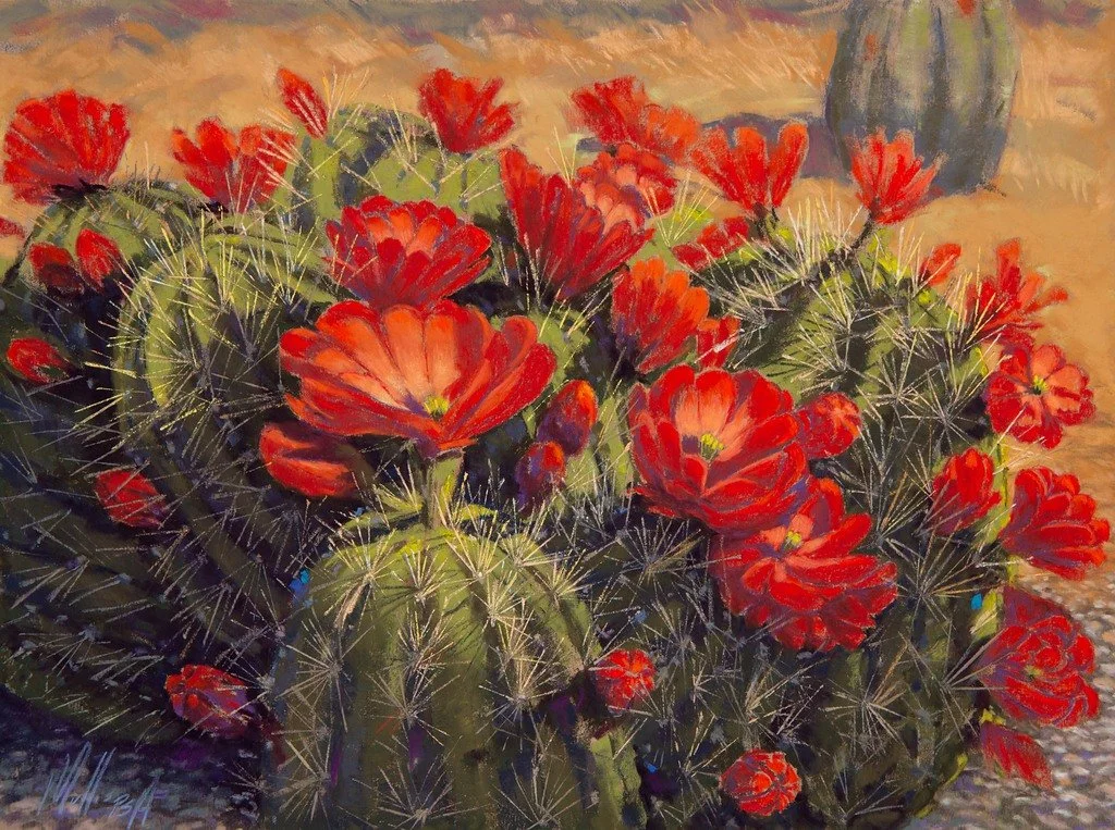 Reneé Marz Mullis is mesmerized by the pastel stick’s strength of color and brilliancy. She paints southwestern landscapes, interiors and exteriors, florals, and still lifes, both in the studio and en plein air. She most enjoys the multitude of challenges in conveying a strong sense of luminosity and atmosphere in her work.