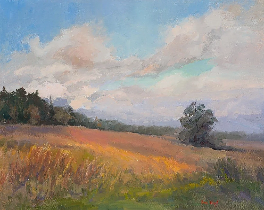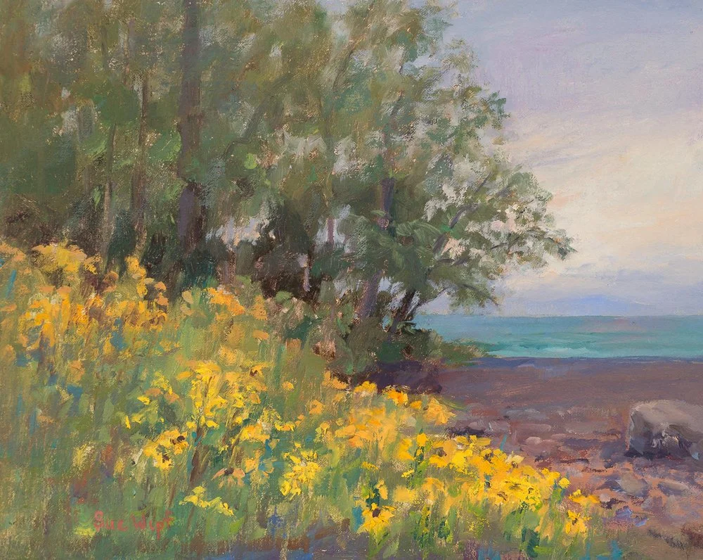 Sue Wipf worked on her parents' farm and spent time pondering the skies and the beauty around her. That experience continues to influence her values and her perspective on the world around her. Her love for nature is expressed in her plein air paintings and studio work. The artworks of Vermeer, Sargent, Turner, and Sorolla have influenced her. She has studied at the Schroeder Studio and taken workshops from other master artists.