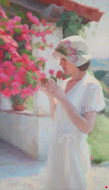 Victoria Castillo is a figurative painter whose work focuses on women in light-infused settings, usually gardens and intimate interiors. She studied painting at Washington & Lee University and at the University of Maryland, graduating with honors. After college, Victoria has lived and worked in both Europe and the US. Most recently, she completed an intensive, classical, live model painting and drawing program at Studio Escalier in France.