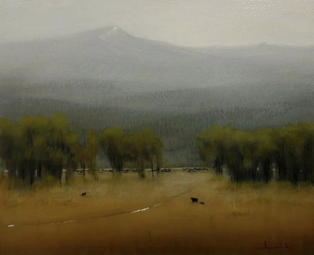 “I particularly like how the cattle cut right through the middle of the painting, separating the horizon and the foreground. It draws your eye right into it and you can almost see the cows moving out of the frame.” Robin Knowlton